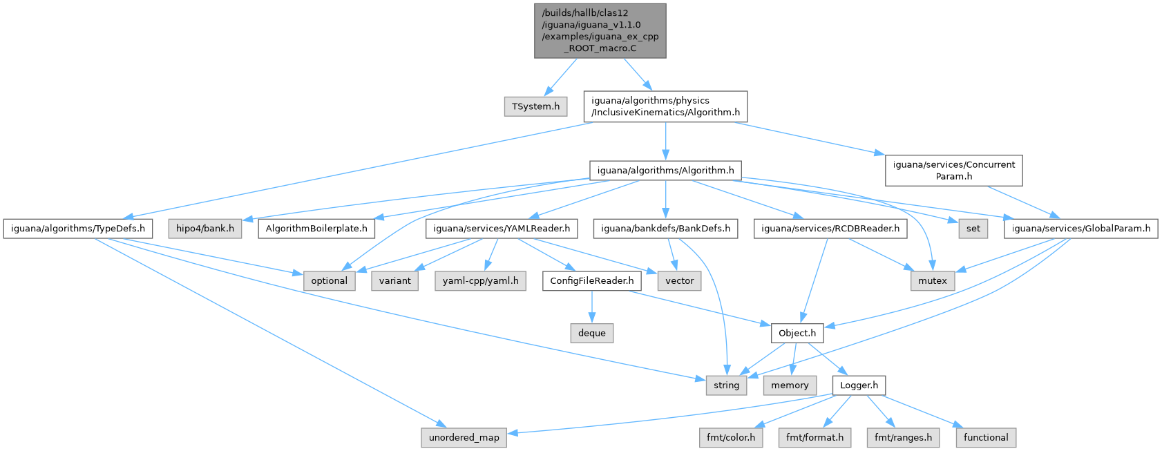 #include <TSystem.h>#include <iguana/algorithms/physics/InclusiveKinematics/Algorithm.h>Very simple example showing how to load and use an Iguana algorithm in a ROOT macro; this example only runs the algorithm and does not require any input data.