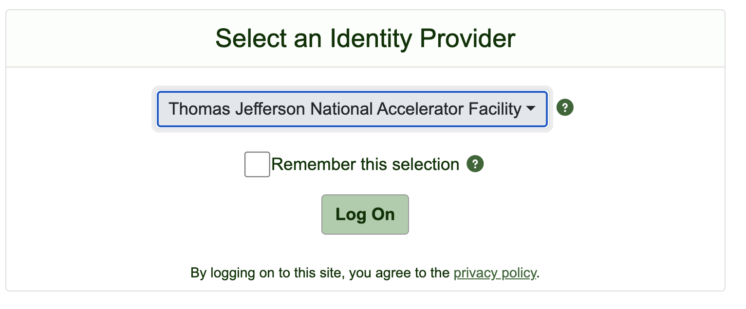 - Select "Thomas jefferson National Accelerator Facility" from the drop down and click "Log On" button.